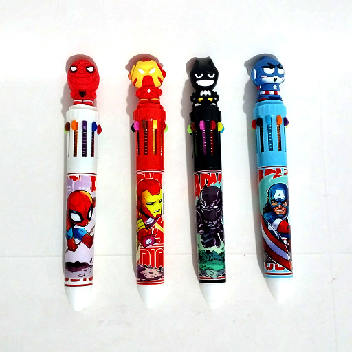 یک بسته 36 تایی خودکار فانتزی که هرکدام از خودکارها 10 تا رنگ پر استفاده رو در خودش داره و طرح پوسته خودکارها شخصیت های ابرقهرمانی هست.