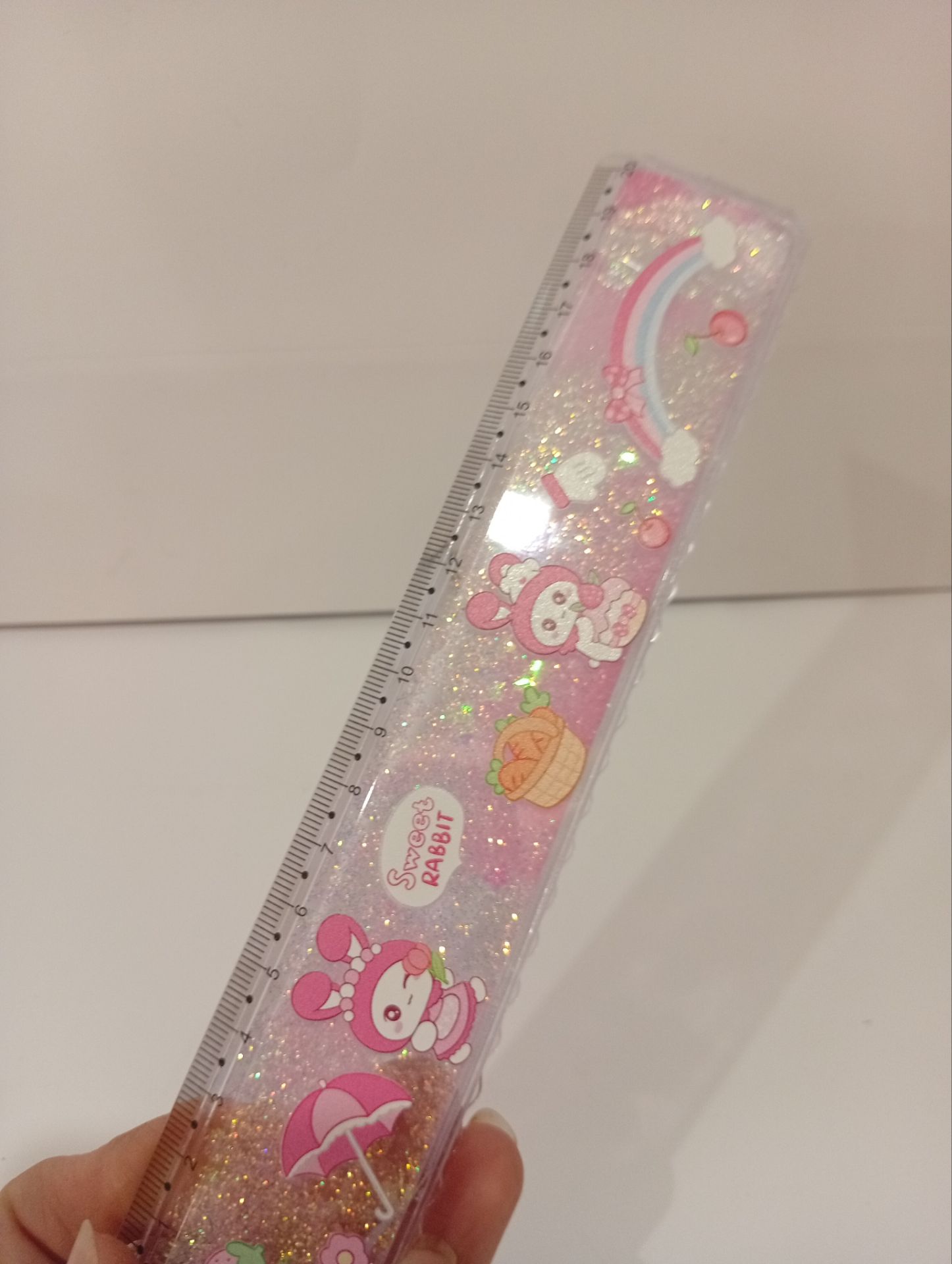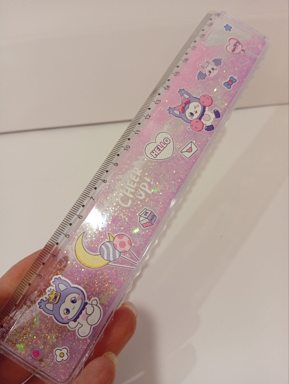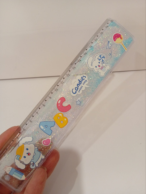 طراحی منحصر به فرد: بدنه شفاف این خطکش حاوی مایعی رنگی و اکلیلهای ریز و درخشان است که با هر حرکت، جلوهای خیرهکننده ایجاد میکنند. این اکلیلها به زیبایی در مایع شناورند و تصویری شبیه به یک آکواریوم کوچک را به نمایش میگذارند.